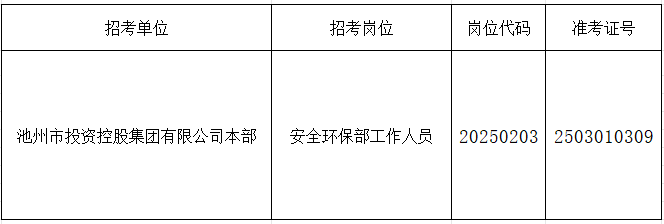 根據(jù)《池州市投資控股集團(tuán)2025年下半年公開招聘工作人員公告》要求,由于入圍現(xiàn)場(chǎng)資格復(fù)審的考生中有部分人員自動(dòng)放棄或不合格產(chǎn)生了人員空缺,現(xiàn)按《公告》要求,在報(bào)考同崗位的考生中按筆試成績從高分到低分的順序依次遞補(bǔ),成績出現(xiàn)并列者一并進(jìn)入資格復(fù)審,現(xiàn)將入圍遞補(bǔ)資格復(fù)審情況公告如下: