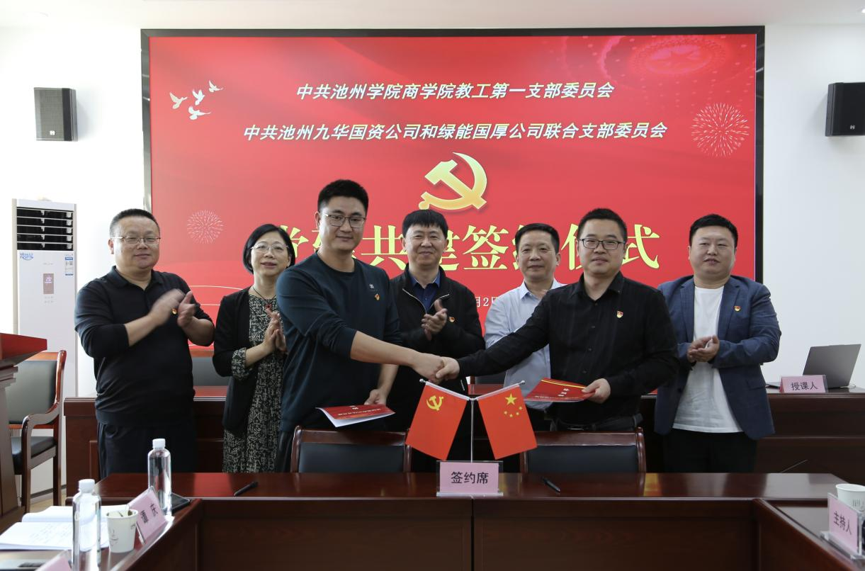池州學(xué)院黨委書記孫曉峰,池州學(xué)院黨委委員、黨委組織部部長胡兵,商學(xué)院黨委書記肖寧生,商學(xué)院院長項桂娥,池州新興產(chǎn)業(yè)投資集團黨委委員、副總經(jīng)理唐義法,九華國資公司和綠能國厚公司聯(lián)合黨支部書記孫權(quán)利等黨員同志參加活動。