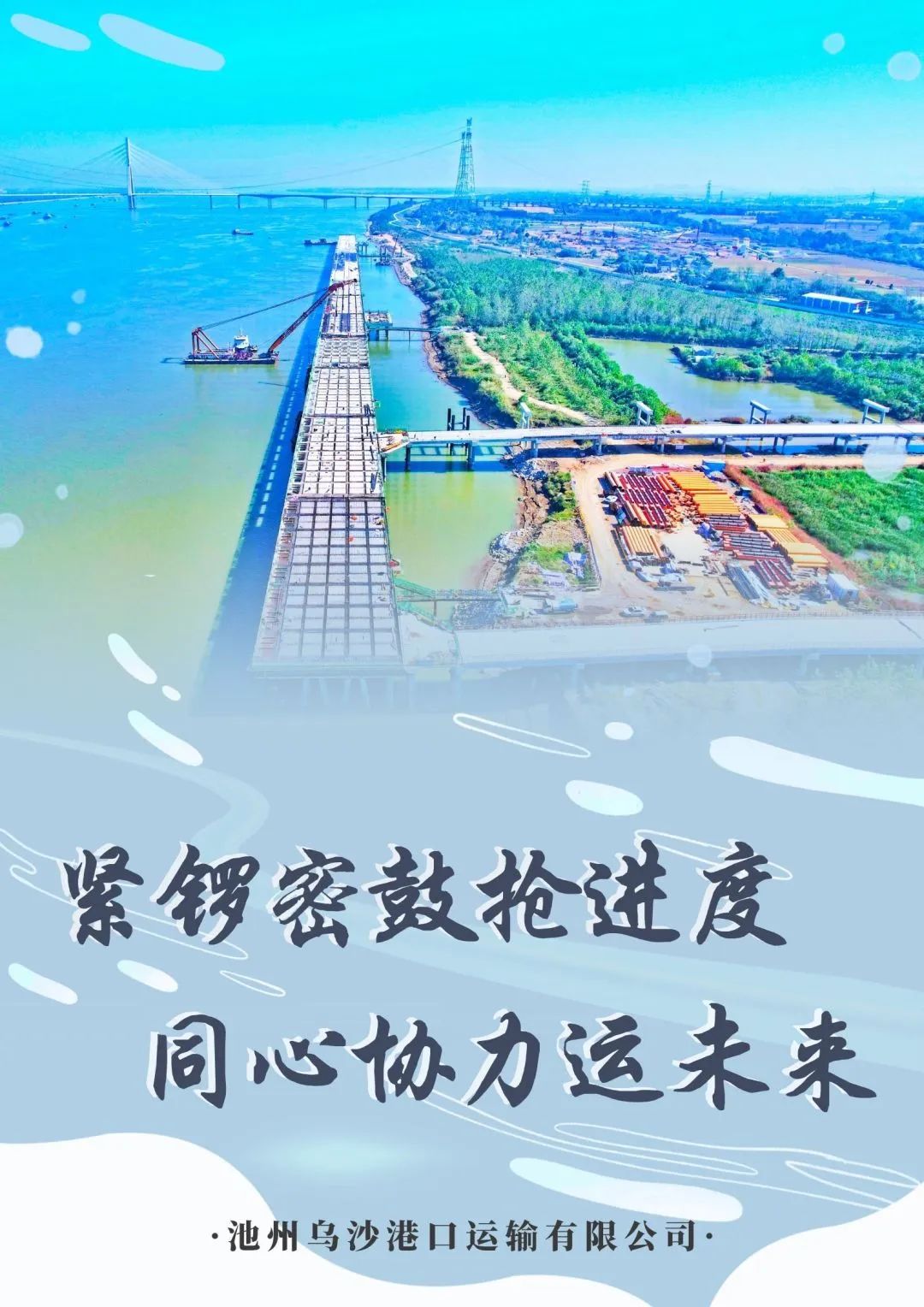 池州港烏沙港區(qū)公用碼頭項目系市投控集團重點投資項目,也是我市重大公用港口基礎設施建設項目,現(xiàn)在正處建設期。截至目前,水域部分(碼頭工程、引橋工程和防洪影響處理工程)已完成產值約2.4億元,陸域部分征遷工作已完成征遷總量的95%,設備采購、融資工作正有條不紊地推進中。下一步,池州烏沙港口運輸有限公司將錨定目標,緊扣節(jié)點,高質高效如期完成烏沙港區(qū)公用碼頭項目建設,為2024年預投產打下堅實基礎。