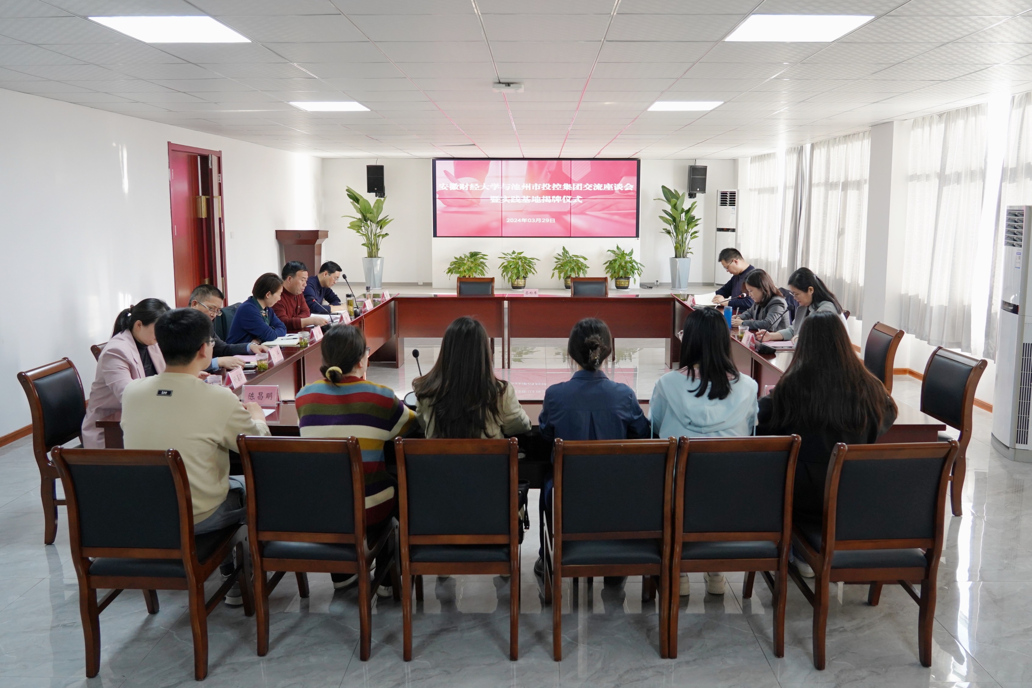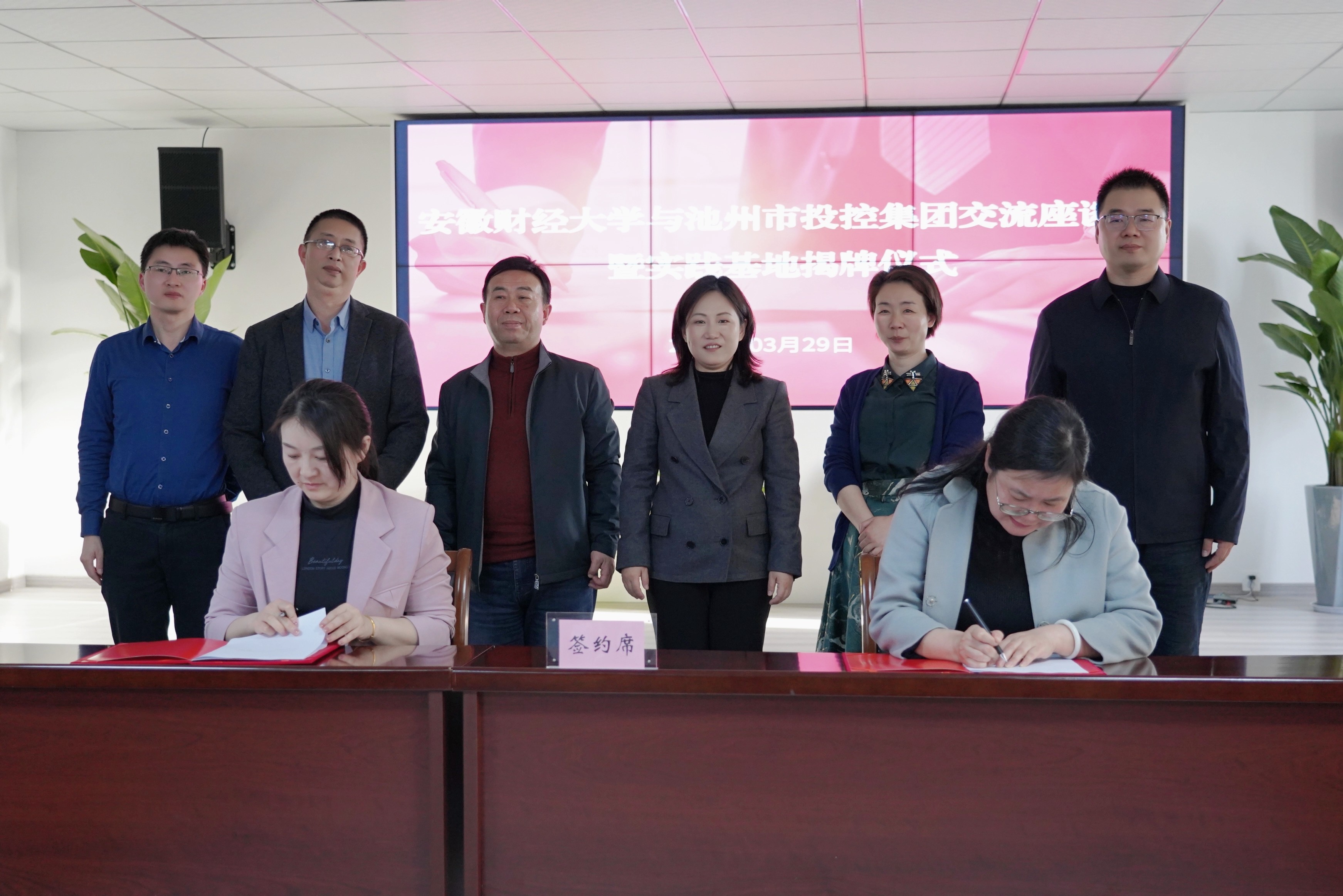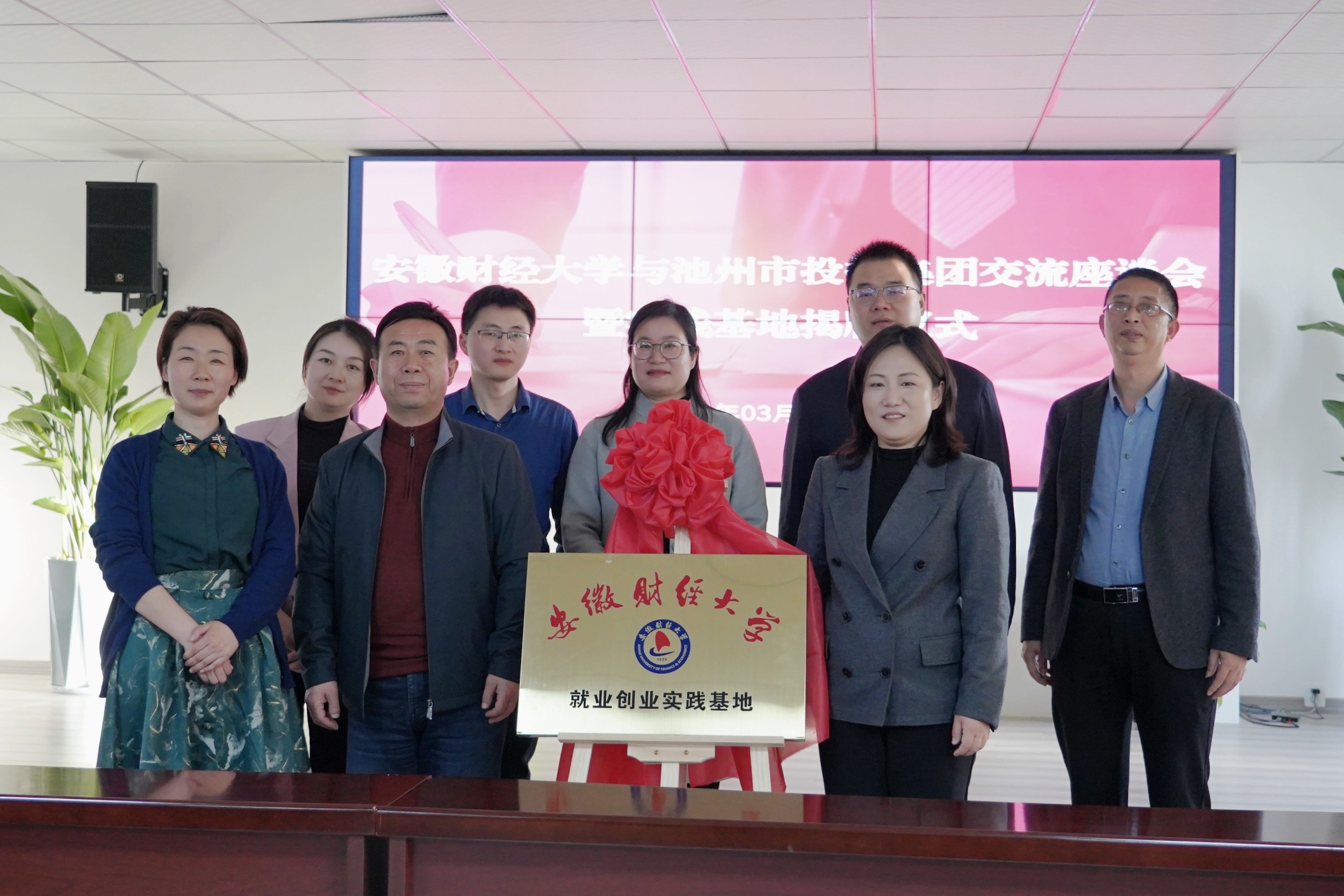 3月29日下午,安徽財經(jīng)大學與池州市投資控股集團舉行“就業(yè)創(chuàng)業(yè)實踐基地”簽約暨揭牌儀式。安財校黨委常委、副校長趙曉明,校學生處副處長丁龍華,校團委副書記袁寶剛,校團委兼職副書記董松濤,池州市人社局黨組成員、市人事考試指導中心主任章和平,市就業(yè)創(chuàng)業(yè)服務中心主任紀平,就業(yè)促進科科長孟華等有關(guān)領(lǐng)導參加活動。儀式由黨委副書記、工會主席嚴艷主持。