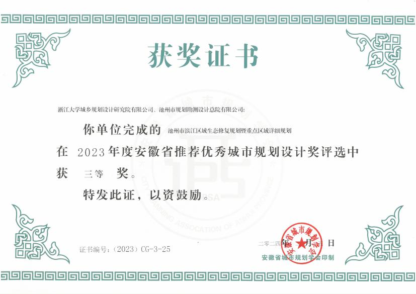 近日,安徽省村鎮(zhèn)建設(shè)學(xué)會和安徽省城市規(guī)劃學(xué)會分別揭曉了2023年度安徽省優(yōu)秀村鎮(zhèn)建設(shè)設(shè)計品質(zhì)示范工程和2023年度安徽省推薦優(yōu)秀城市規(guī)劃設(shè)計獎的獲獎名單。由集團(tuán)所屬設(shè)計總院公司編制完成的《池州市貴池區(qū)梅街鎮(zhèn)姚街村村莊規(guī)劃》和《池州市濱江區(qū)域生態(tài)修復(fù)規(guī)劃暨重點區(qū)域詳細(xì)規(guī)劃》兩個項目分別榮獲2023年度安徽省優(yōu)秀村鎮(zhèn)建設(shè)設(shè)計品質(zhì)示范工程(村鎮(zhèn)規(guī)劃設(shè)計與公共服務(wù)設(shè)施)三等獎和2023年度安徽省推薦優(yōu)秀城市規(guī)劃設(shè)計獎三等獎。