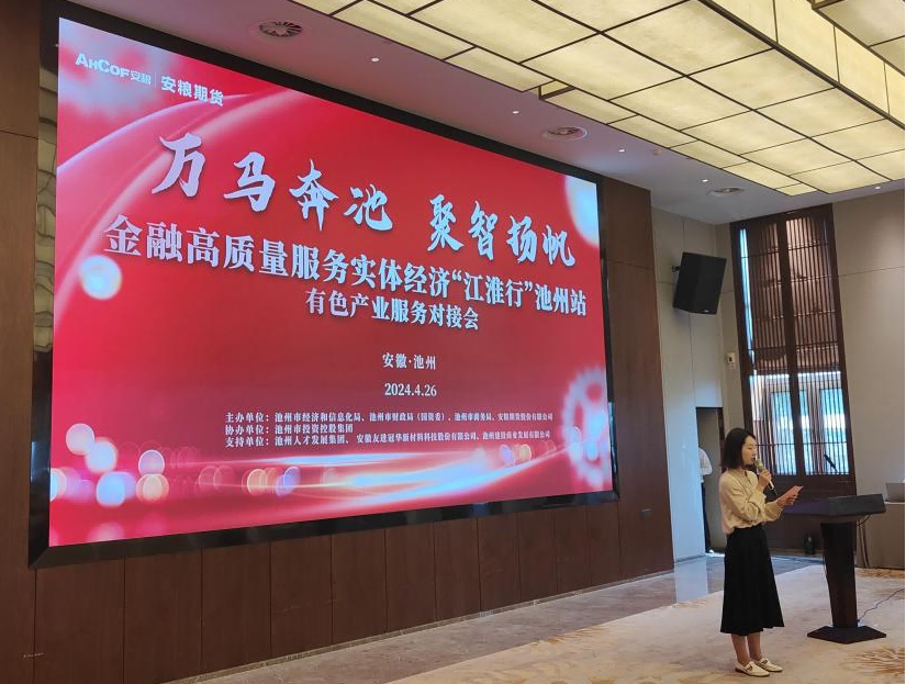 本次會議由池州市經(jīng)濟(jì)信息化局、池州市財政局(國資委)、池州市商務(wù)局、安糧期貨股份有限公司主辦,池州市投資控股集團(tuán)協(xié)辦,安徽友進(jìn)冠華新材料科技股份有限公司、池州建投商業(yè)發(fā)展有限公司提供支持,邀請了池州市鎂鋁銅相關(guān)企業(yè)及多家金融機(jī)構(gòu)代表參會。池州市商務(wù)局黨組書記、局長李進(jìn)出席活動,池州市經(jīng)濟(jì)與信息化局副局長朱宇、安糧期貨董事長韓文輝先后致辭。