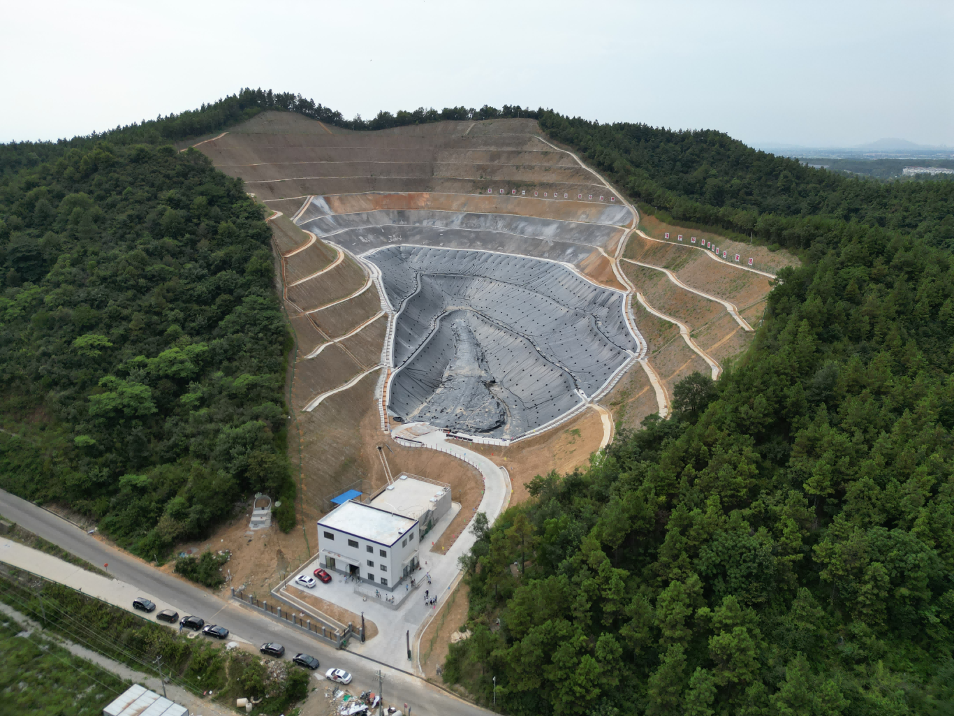 池州市生活垃圾焚燒飛灰固化物填埋場建設(shè)項目位于貴池區(qū)涓橋鎮(zhèn)聯(lián)合村,項目占地89畝,新建設(shè)29萬方飛灰填埋庫區(qū)及附屬設(shè)施,項目總投資約8363萬元,其中一期建設(shè)10萬方飛灰填埋區(qū)。主要包含土方整理工程、邊坡防護工程、防滲工程、淋溶水處理車間工程、調(diào)節(jié)池工程以及其他附屬工程。